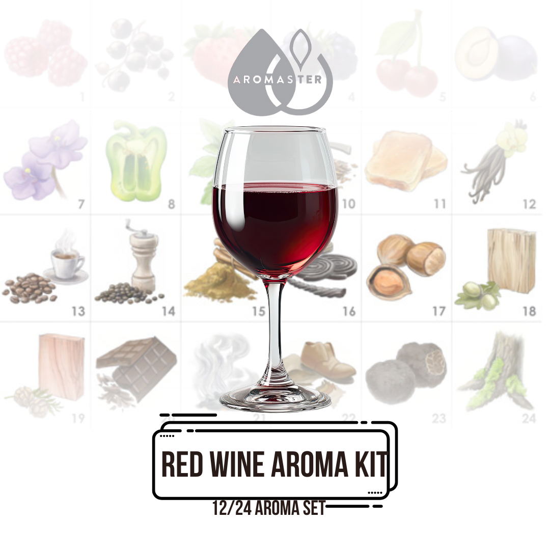 Red Wine Aroma Kit by Aromaster (12-Aromas) with Aroma Wheel